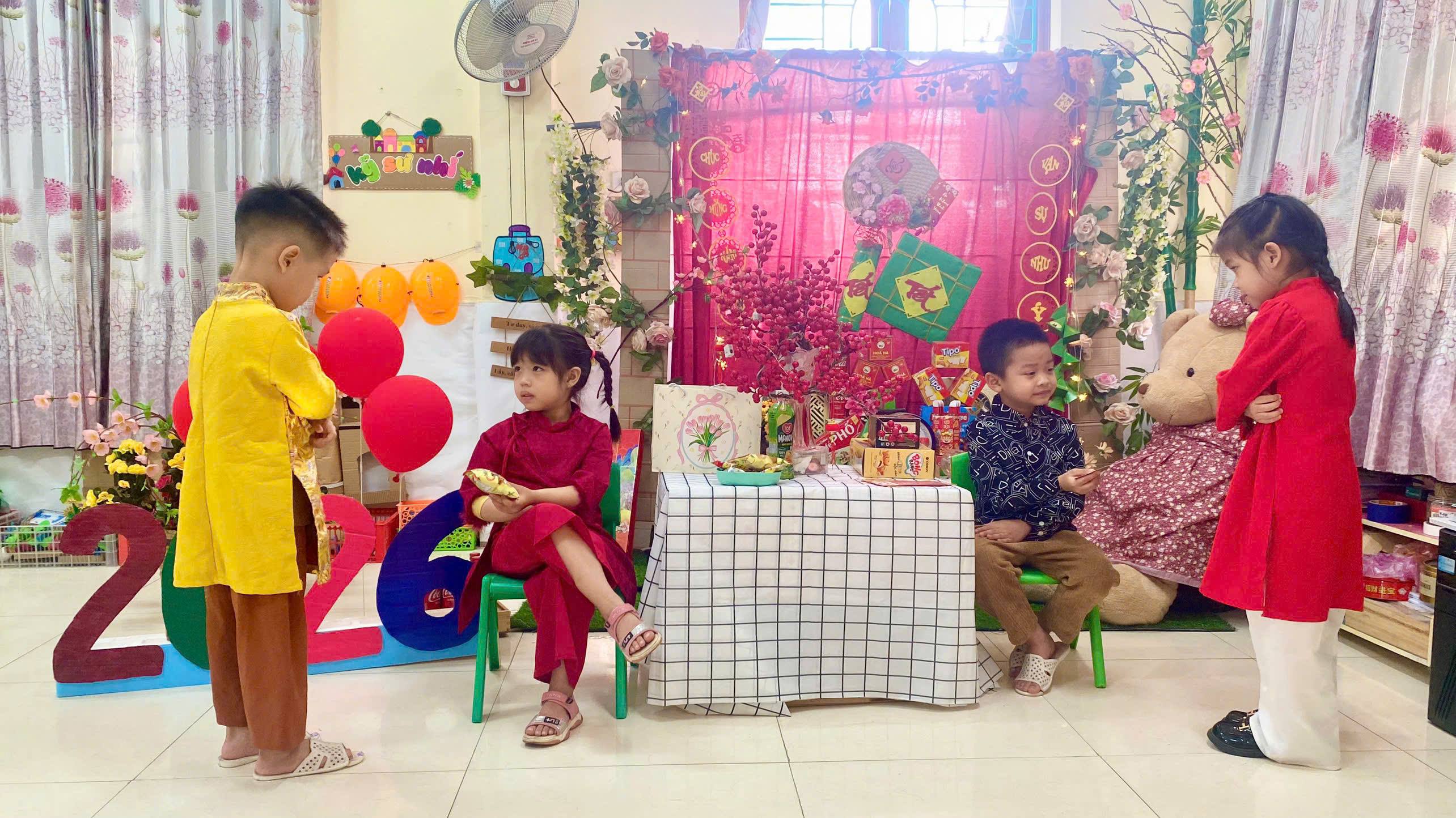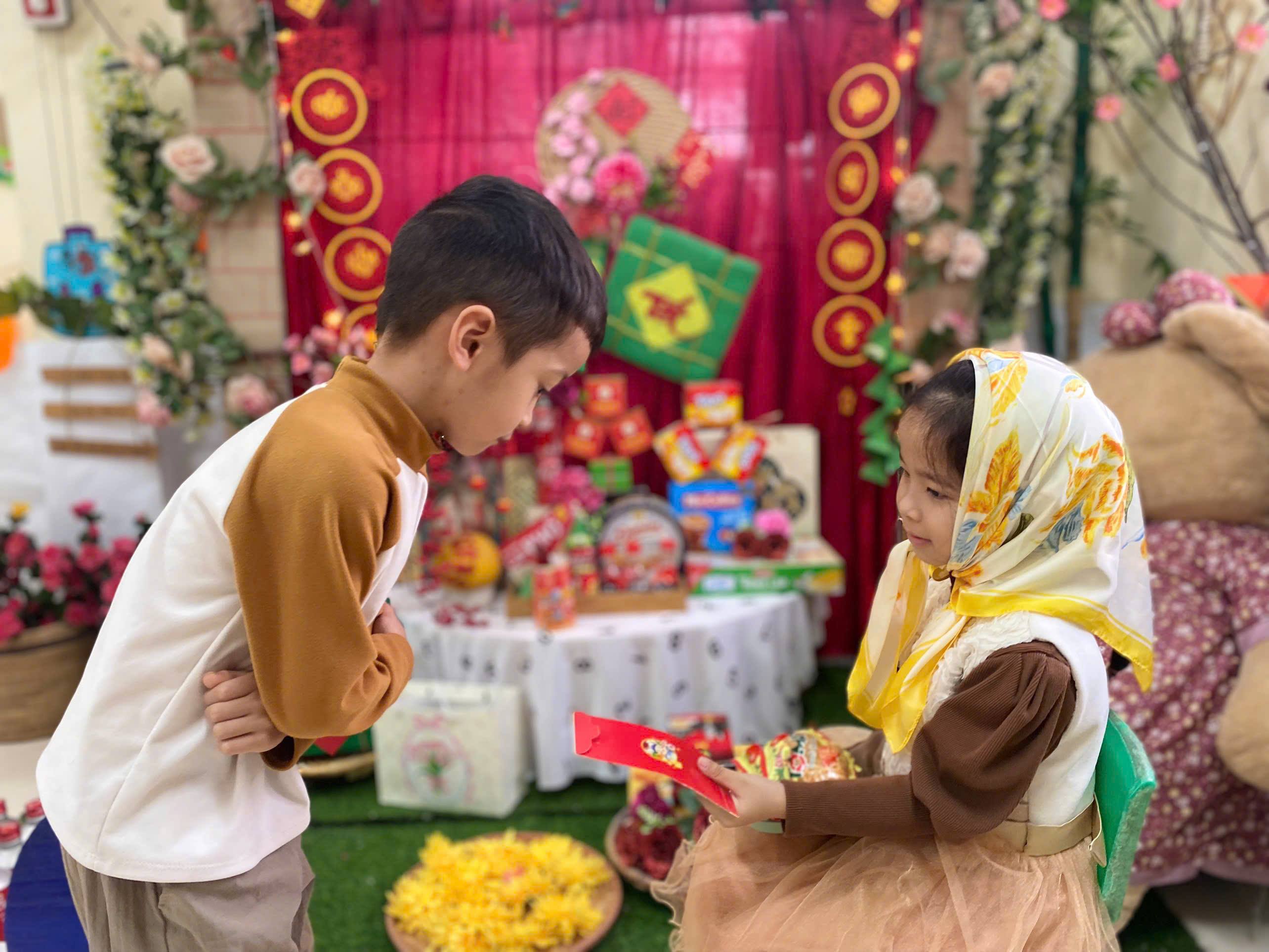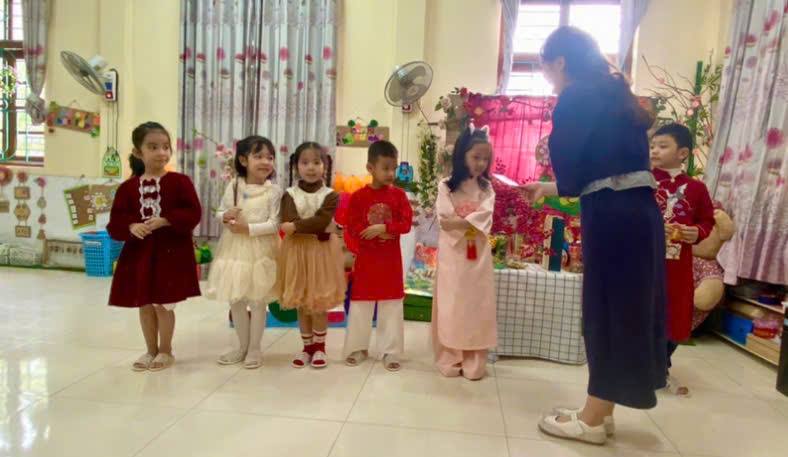 Từ đó, hình thành cho con thói quen cảm ơn khi được người lớn tặng quà. Đồng thời giúp con xây dựng sự tự tin và biết cách ứng xử phù hợp, lịch sự với người lớn, đặc biệt là vào dịp Tết. Bên cạnh đó, các cô còn hướng dẫn trẻ cách giữ gìn, sử dụng tiền lì xì sao cho đúng, thiết thực, không nên phung phí.