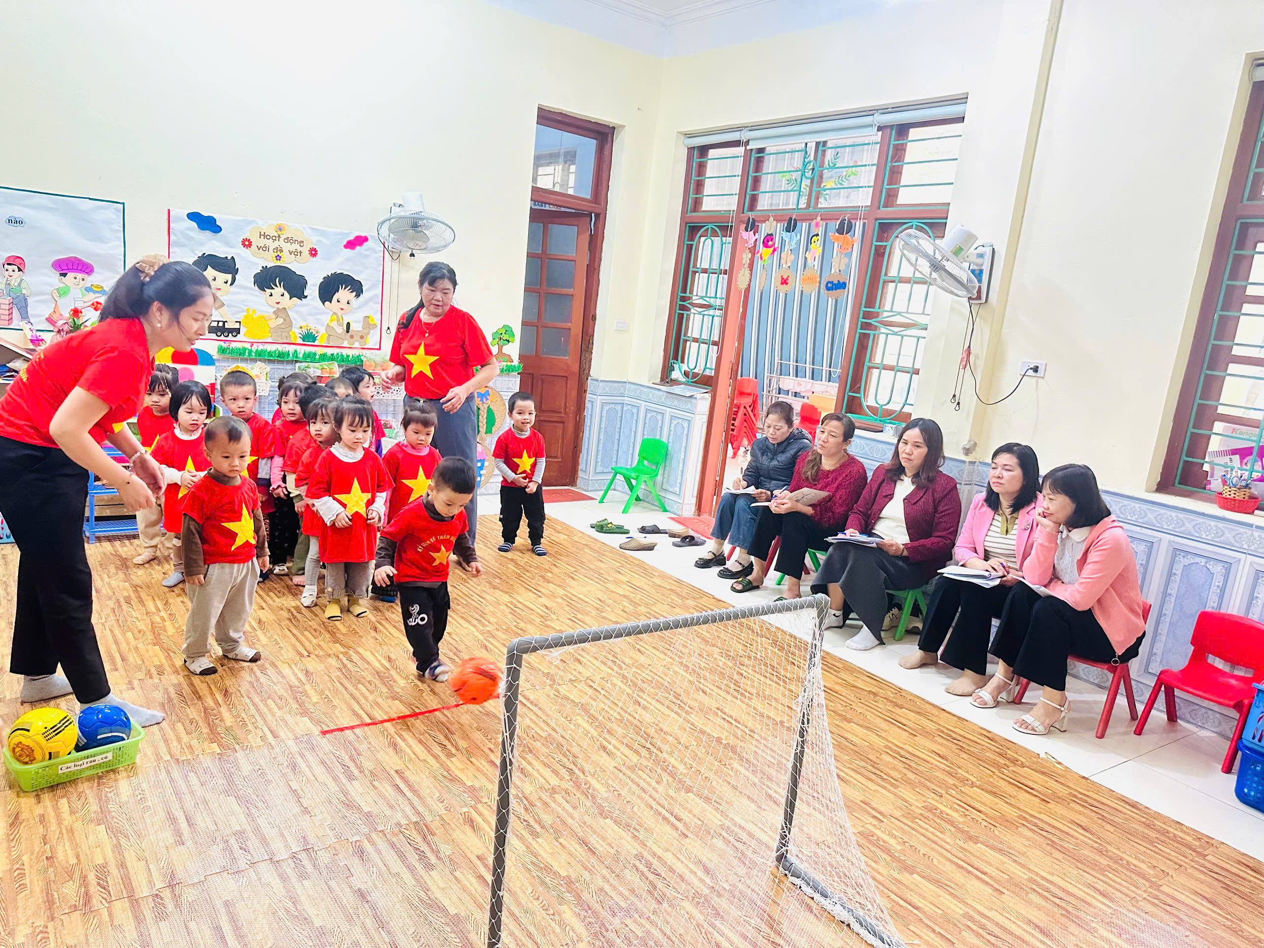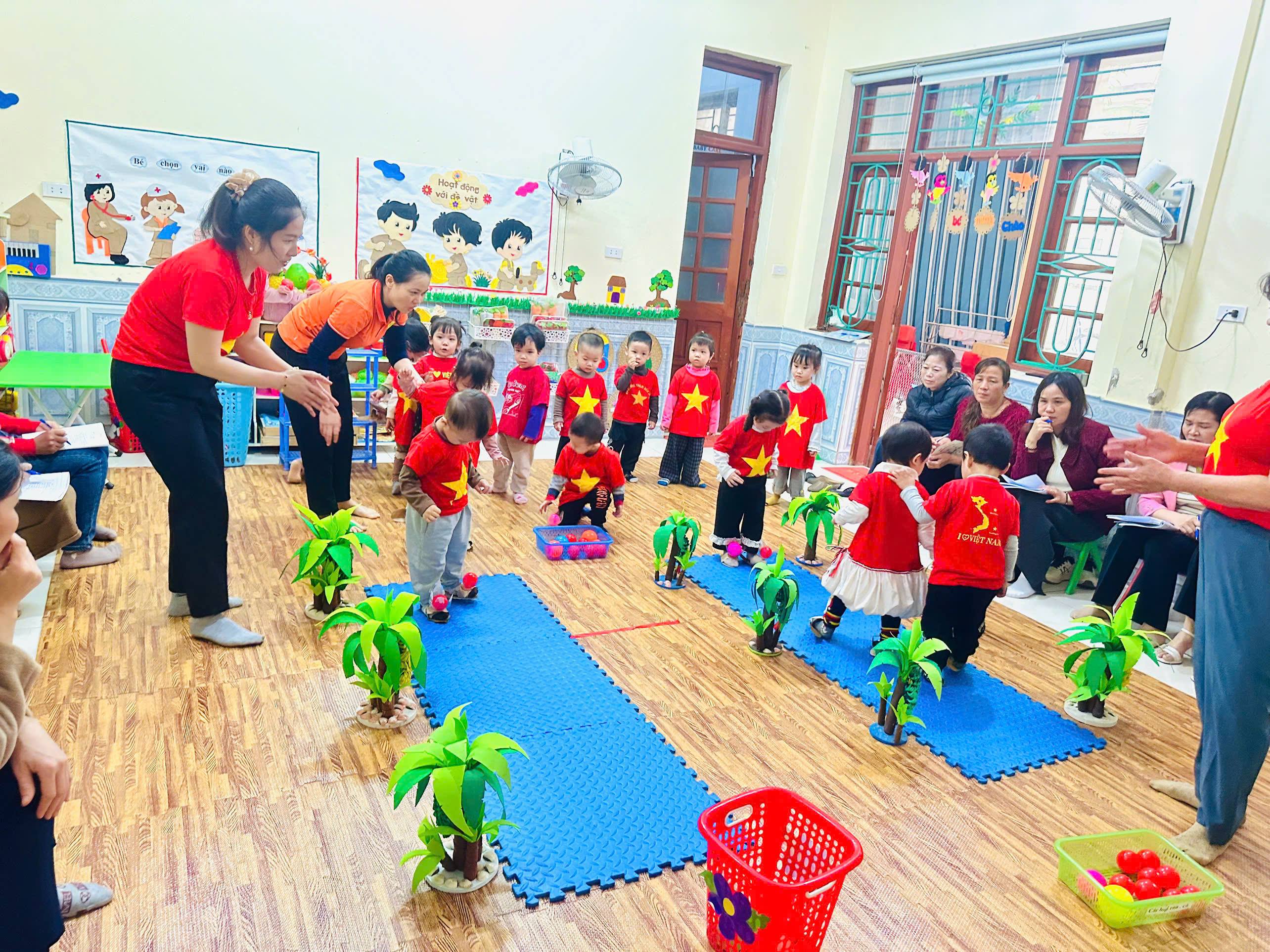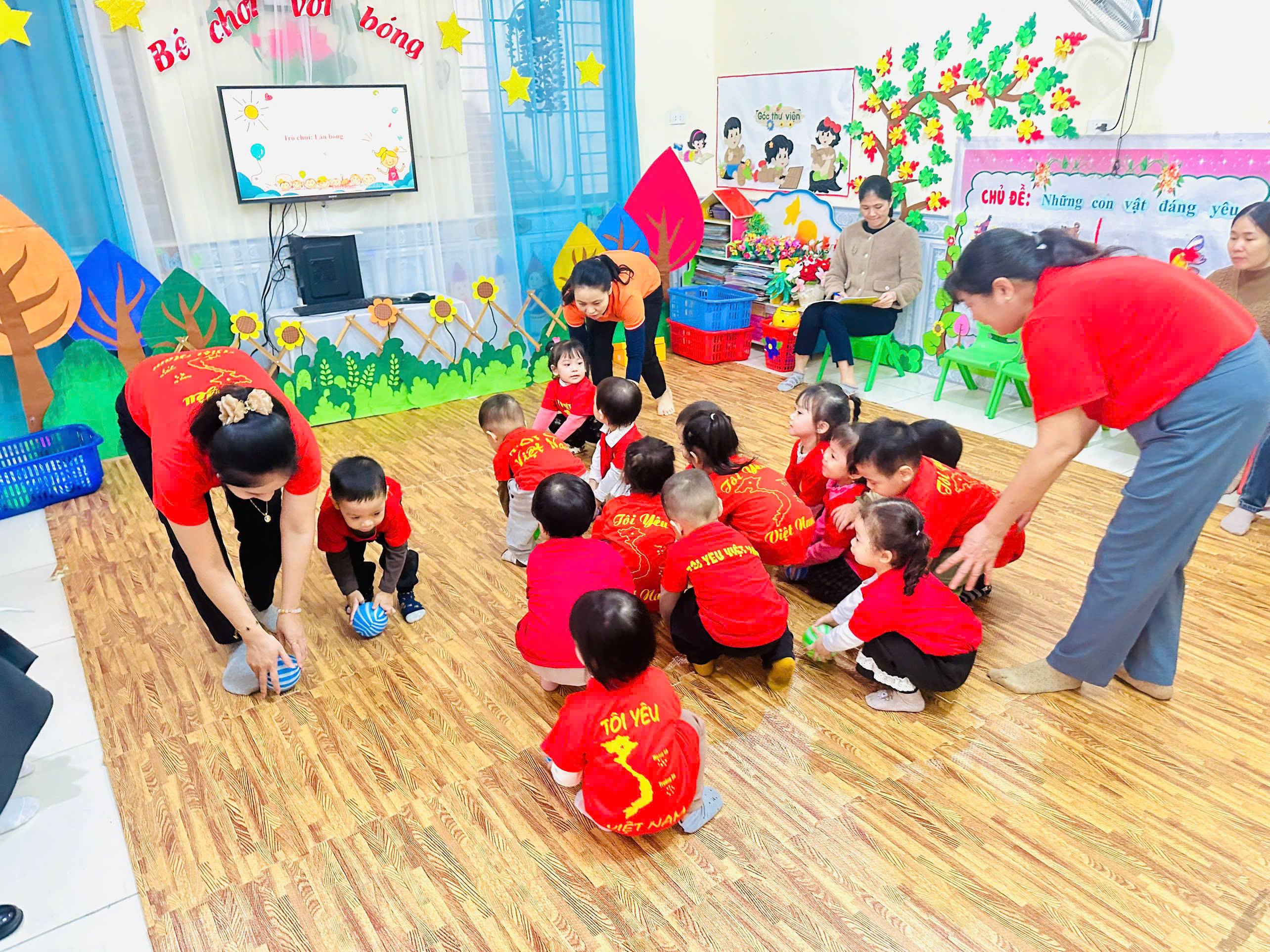 Điểm nổi bật của hoạt động là cô giáo đã linh hoạt điều chỉnh cách tổ chức phù hợp với khả năng của từng trẻ, đảm bảo tất cả trẻ đều được tham gia và trải nghiệm. Trẻ thể hiện sự vui thích, tập trung và hợp tác khi chơi, qua đó góp phần phát triển vận động, nhận thức và kỹ năng giao tiếp ban đầu cho trẻ.